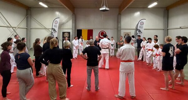 Na drie uitnodigingen van URKDB, Eindelijk had ik de kans, dit weekend van 14 en 15 Maart, naar Mechelen te gaan, nabij Brussel, naast Didier Lorho (7e dan en voorzitter van URKDE), om tussen te komen tijdens de jaarlijkse stage.